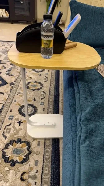 Forma specială în C intră sub canapea sau pat, ocupând puțin spațiu și oferind loc perfect pentru băutură, laptop sau gustări.